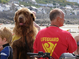 This beautiful, 14 stone Newfoundland used to patrol the sands at Sennen Cove with his owner Steve Jamieson, the head RNLI lifeguard, who had trained his canine friend to become an active lifesaver as well as an irresistible poster boy for promoting safety on the beach.